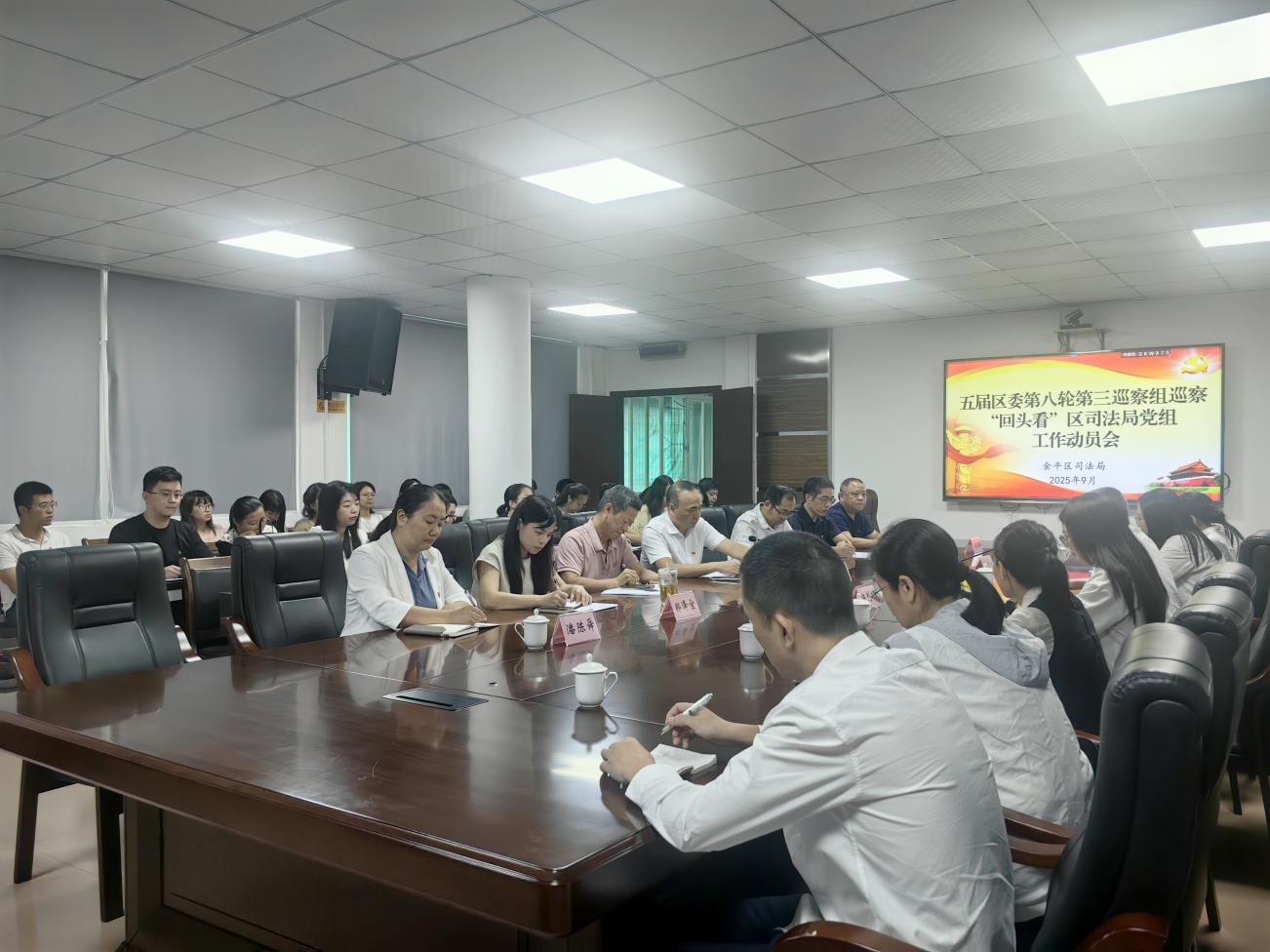 根据五届区委第八轮关于巡察工作的统一部署,2025年9月18日,五届区委第八轮第三巡察组巡察“回头看”金平区司法局党组工作动员会召开。会前,巡察组组长吴海鸥主持召开与金平区司法局党组织主要负责人林辉塔的见面沟通会。动员会上,巡察组组长吴海鸥通报了巡察任务和工作安排,并就巡察工作提出要求,金平区司法局党组织书记林辉塔主持会议并作表态发言。