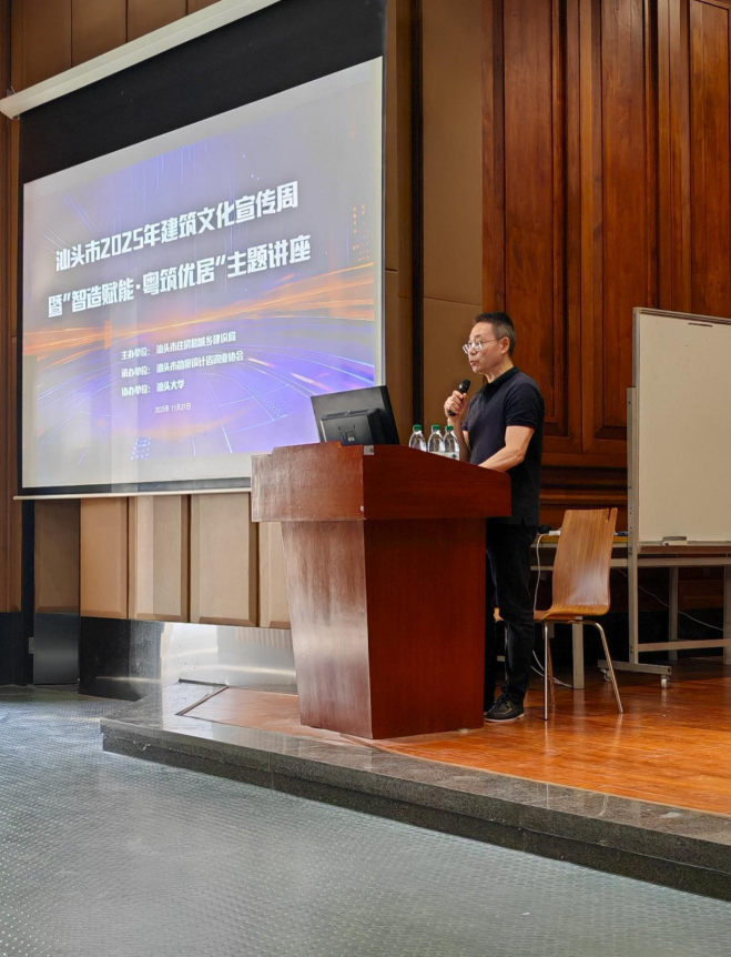根据省住房城乡建设厅2025年建筑文化宣传周的工作部署,11月21日下午,“智造赋能·粤筑优居”主题讲座暨汕头市2025年建筑文化宣传周活动,在汕头大学顺利举办。省工程勘察设计行业协会、市住房城乡建设局、市勘察设计咨询业协会相关领导,我市各勘察设计企业、施工图审查机构的技术人员及汕大师生近120人参加了活动。