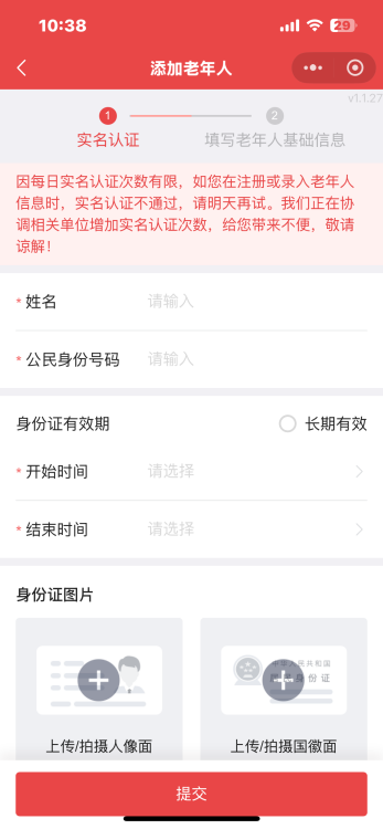 2.添加老年人信息并完成实名认证