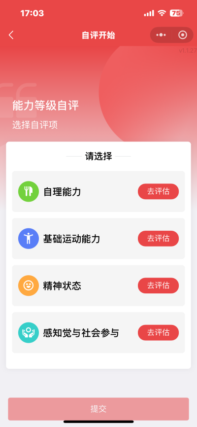 老年人及其代办人可通过“民政通”能力等级自评功能进行自主预评估后再选择第三方评估机构进行正式能力评估。