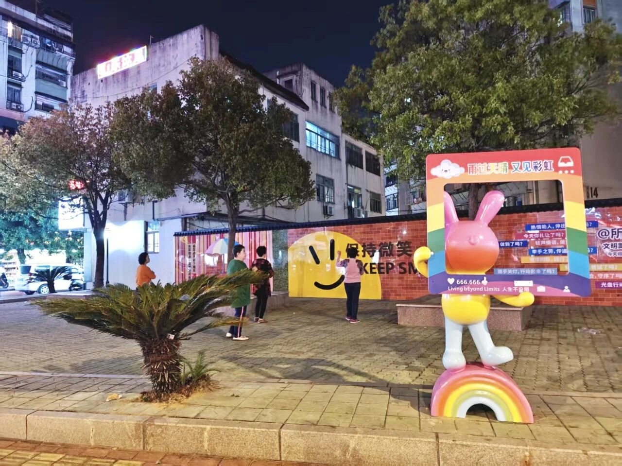 夜幕下的樱花园小广场,灯光璀璨处,皆是幸福的模样。下次去网红店打卡,记得提前来广场逛逛——这里的夜色,同样值得期待。
