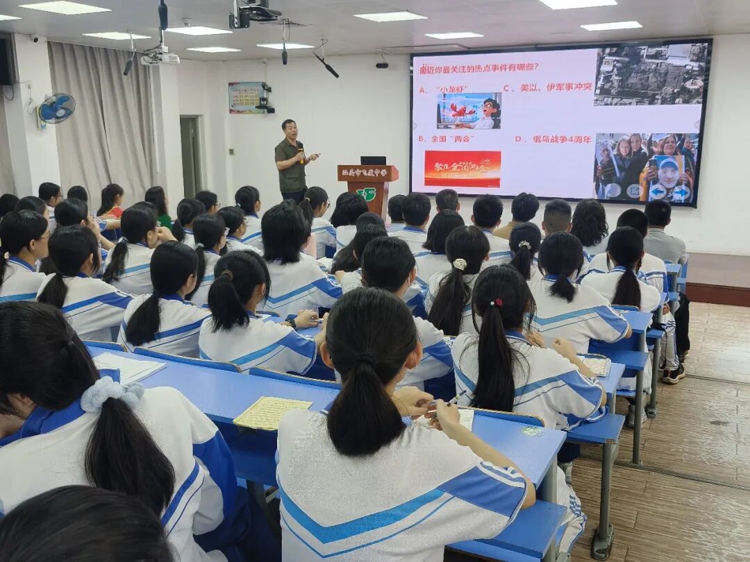 讲座现场,主讲人结合自身数十年军旅生涯的亲身经历,以生动鲜活的案例、饱含深情的话语,将我国国防建设的辉煌历程与红色历史故事深度融合,详细解读了我国国防建设取得的历史性成就、当前复杂多变的国防安全形势,以及国防教育对青少年健康成长的重要意义,引导同学们铭记历史、缅怀先烈、崇尚英雄,牢固树立强烈的国防意识和家国责任担当,鼓励大家珍惜青春时光、发奋学习、锤炼过硬本领,以青春之力守护家国安宁、助力国防建设。整场讲座内容充实、内涵深刻、感染力强,现场互动频繁、氛围热烈,赢得了师生们的阵阵掌声。活动尾声,汕头市飞厦中学向石炮台街道长厦社区赠送“心系国防,情系教育”荣誉牌匾,以此致谢社区对校园国防教育工作的大力支持。