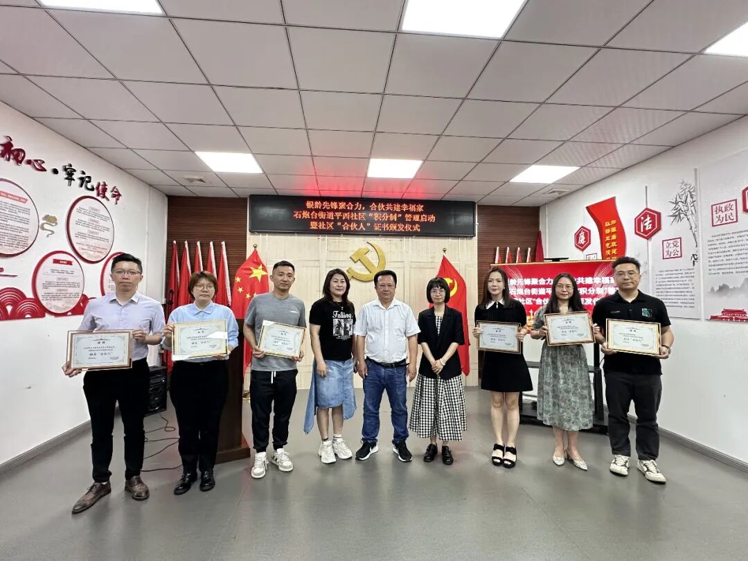 在热烈氛围中,19名社区“合伙人”接过社区颁发的证书。一纸证书,既是认可也是责任,标志着平西社区与共建单位、商户、社会组织建立常态化、制度化合作关系,以积分激励、契约共建、双向服务为抓手,推动资源下沉、力量下沉、服务下沉,为社区治理注入新动能,构建起党组织引领、多元参与、共建共赢的治理共同体。