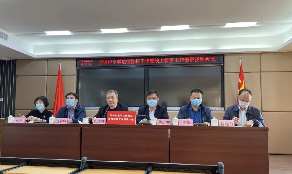 2月29日上午,金平区教育局召开全区中小学疫情防控工作暨线上教育工作部署视频会议。全区各中小学设分会场,金平区教育局防控新型冠状病毒感染的肺炎疫情工作领导小组成员、各学校领导班子、行政干部、教研组长参加了会议。