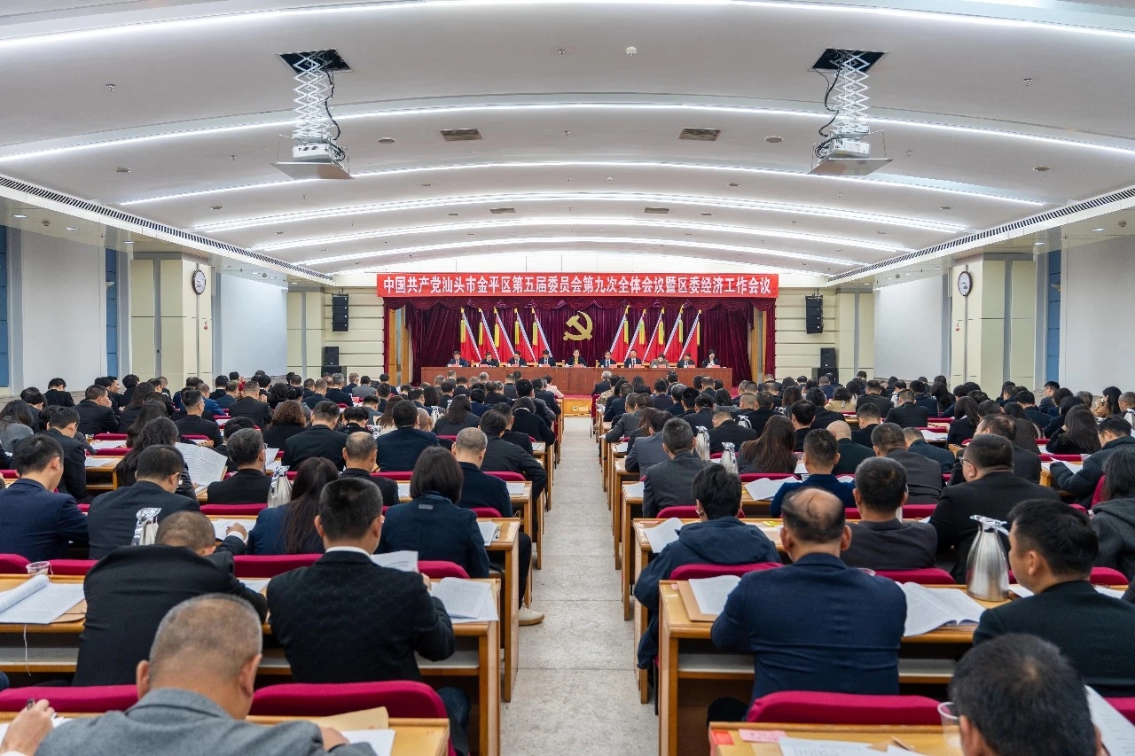中国共产党汕头市金平区第五届委员会第九次全体会议于2026年1月26日召开。全会由金平区委常委会主持。会议坚持以习近平新时代中国特色社会主义思想为指导,全面贯彻落实党的二十大和二十届历次全会以及中央经济工作会议精神,深入贯彻落实习近平总书记对广东系列重要讲话和重要指示精神,贯彻落实省委十三届八次全会暨省委经济工作会议和市委十二届十一次全会暨市委经济工作会议精神,总结2025年工作,分析当前形势,部署2026年工作。全会听取和讨论了陈玩雪同志代表金平区委常委会所作的报告和陈常春同志关于经济工作的专题发言,审议了金平区委常委会2025年传达学习贯彻落实习近平总书记重要讲话和重要指示批示精神情况、抓党建工作情况的书面报告。