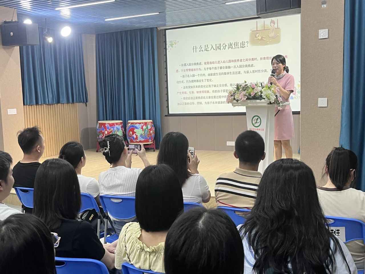 本次活动,街道妇联兼职副主席林园长向家长们分析幼儿园阶段孩子的心理状态,科学讲解什么是“幼儿入园分离焦虑”,对如何帮助孩子从家里向幼儿园过渡提出指导性意见。家长们积极与老师互动,针对孩子的教育教学、行为习惯养成、自我防护教育、安全接送、卫生保健等问题进行深入探讨,集思广益,共同为孩子的成长出谋划策。活动还邀请汕头大学公共卫生学院志愿者向家长们传播营养知识,以“科学食养,助力幼儿健康成长”为主题,通过介绍膳食宝塔的结构向家长们科普合理膳食的重要性以及如何实现合理膳食,以提升孩子身体素质与防病能力,建立营养新生活,为孩子健康成长保驾护航。