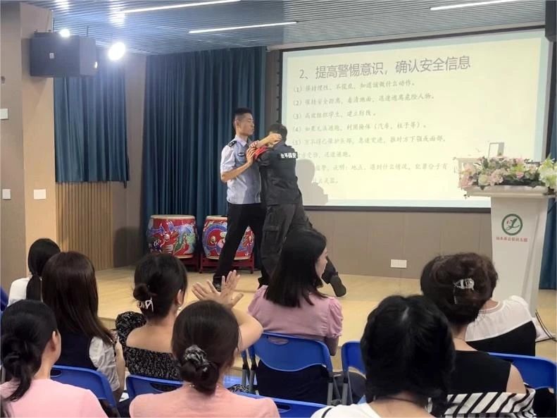 校园安全是学校开展各项工作的前提和基础,为保障校园内师生安全,本活动邀请汕头市公安局金平分局东方派出所民警、金苑社区党委兼职副书记李云龙开展“反恐防暴培训会”。会中,民警向家长们、安保人员及老师讲解有关恐怖活动的知识,介绍如何判断危险、如何采取正确的避险措施以及自救互救方法。民警向安保人员及老师介绍防暴器械的正确使用方法,并进行实操培训及反恐演练。本次培训会有效提升校园提高安保人员和教职工的反恐防暴安全意识及能力,多方齐出力,扎实做好护校安园工作,织牢校园安全网。