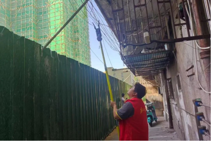 主次干道“脉络”畅通后,街道并未止步,而是聚焦背街小巷线缆“微乱象”,以“绣花功夫”持续“护脉”。针对小巷深处、老旧小区内线缆松散悬垂、杂乱缠绕的痛点,街道专门购置多套专业光缆捆扎设备,建立错峰轮流使用机制,让各社区按需调配、高效利用。在明珠园、光华路2号小区、新发园等典型区域,工作人员化身细致入微的“经络调理师”,对凌乱线缆分类规整,为昔日无序的“三线”搭建起有序畅通的“空中轨道”,彻底破解背街小巷线缆乱象。同时,建立“街道+社区”常态化巡查管护机制,定期“复诊”街巷线缆状况,及时处置线缆松动、垂落等隐患,巩固整治成果,让城市“经络”持续保持通畅,推动人居环境稳步提质。