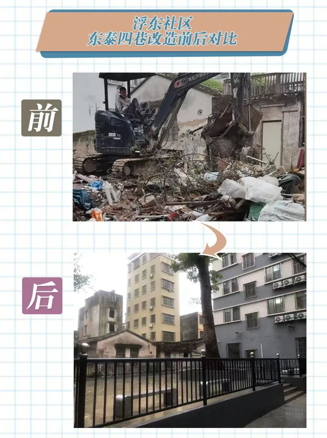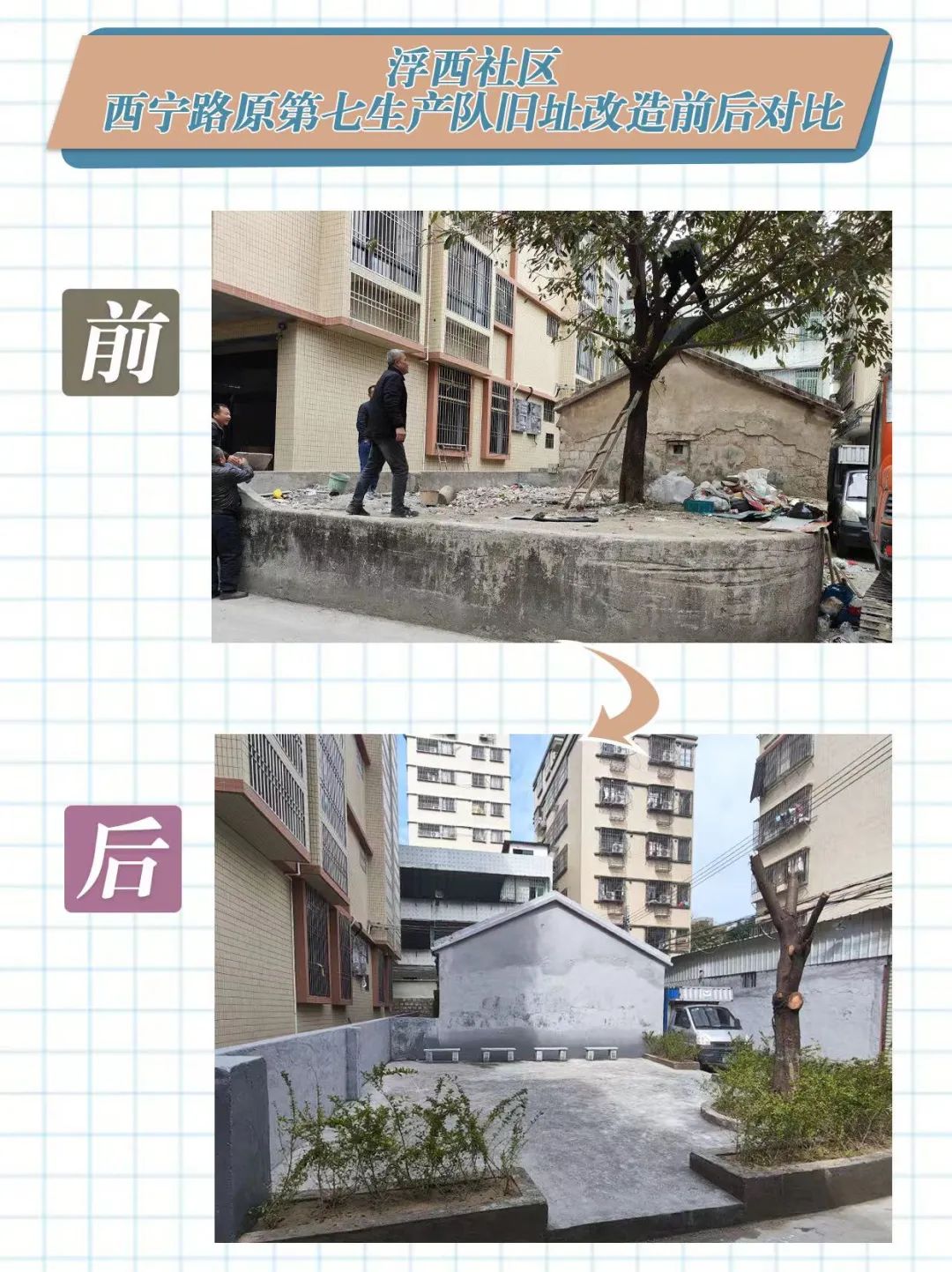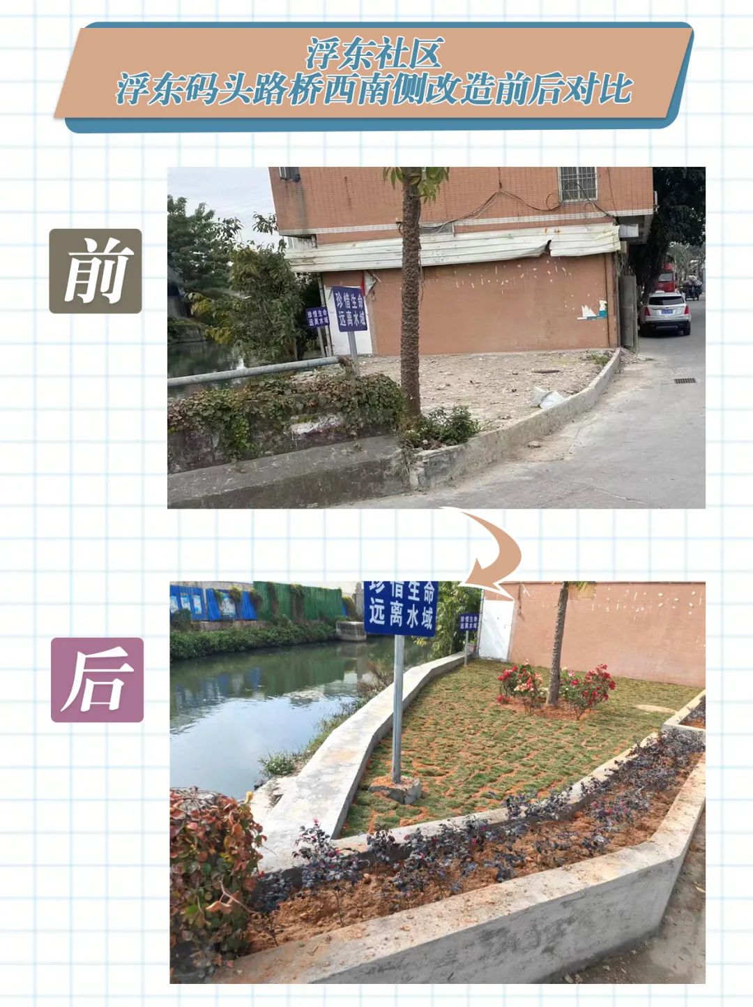 “清洁卫生搞好了,座椅搭起来了,乡里乡亲出门聚会的地方就有了!”浮东社区东泰四巷、浮西社区西宁路原第七生产队旧址的“小广场”建起来后,路过的村民纷纷点赞。两处地方原先都是杂物垃圾堆积的卫生黑点。整治行动后,卫生黑点变闲置用地,再次“美化”后成了“小广场”——磨平路面,铺上新砖,布设小石凳。除了“小广场”,“小花园”也在广厦“见缝插针”。浮东码头路桥西南侧,一处荒芜的空地就被美化成“小花园”。截至目前,浮东、浮西社区已进行或正在进行的景观美化提升约600㎡,通过“小切口”带动村容村貌“大提升”。
