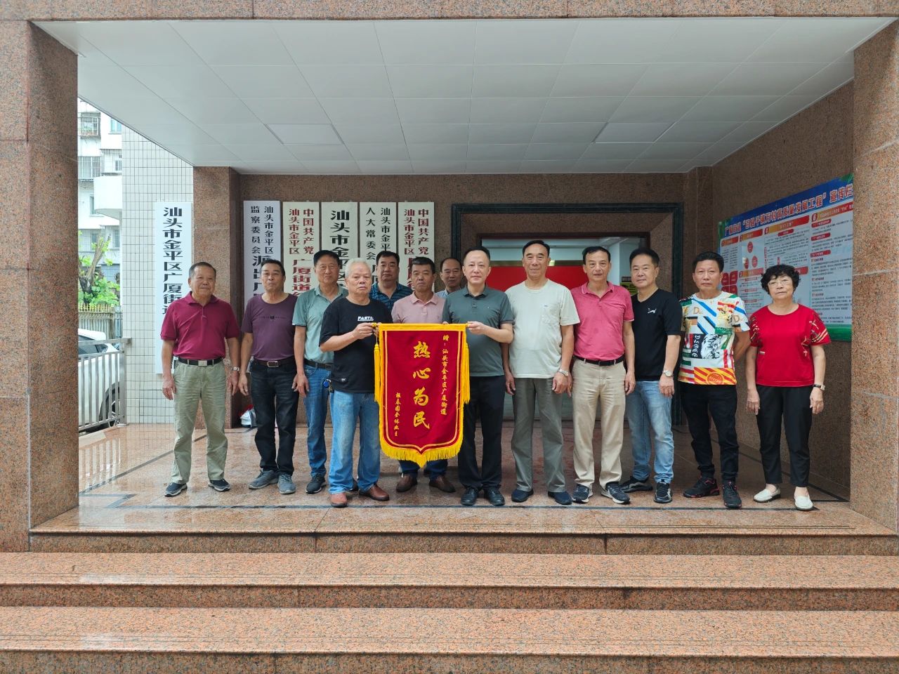 “热心为民”,这是6月5日上午,辖区报春园十几位业主代表带来的红彤彤锦旗上印制的大字,他们代表报春园全体业主向街道办事处送上锦旗,锦旗虽轻,情谊却浓,以精湛的四字之言表达对广厦街道聚焦民生关切,破解民生难题,办好民生实事的感激之情。