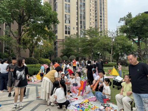 5月1日一早,金紫世家小区乒乓球室人声鼎沸。“金湖生活圈乒乓球联谊赛”率先拉开帷幕,比赛吸引了来自周边不同小区各年龄段的乒乓球爱好者,大家以球会友,切磋技艺。赛场上,选手们精神饱满,挥拍竞技;赛场下,观众们加油助威,其乐融融。小区空地上“童趣跳蚤市集”也热闹开张,孩子们化身“小摊主”,将自己闲置的玩具、书籍、手工艺品等摆上摊位,通过交换或低价售卖的方式,让旧物焕发新生。活动现场热闹非凡,一旁的家长们也借此机会交流育儿心得。“孩子不仅收获了新玩具,还锻炼了胆量和表达能力,学会了沟通和分享,真是一举多得!”一位家长点赞道。