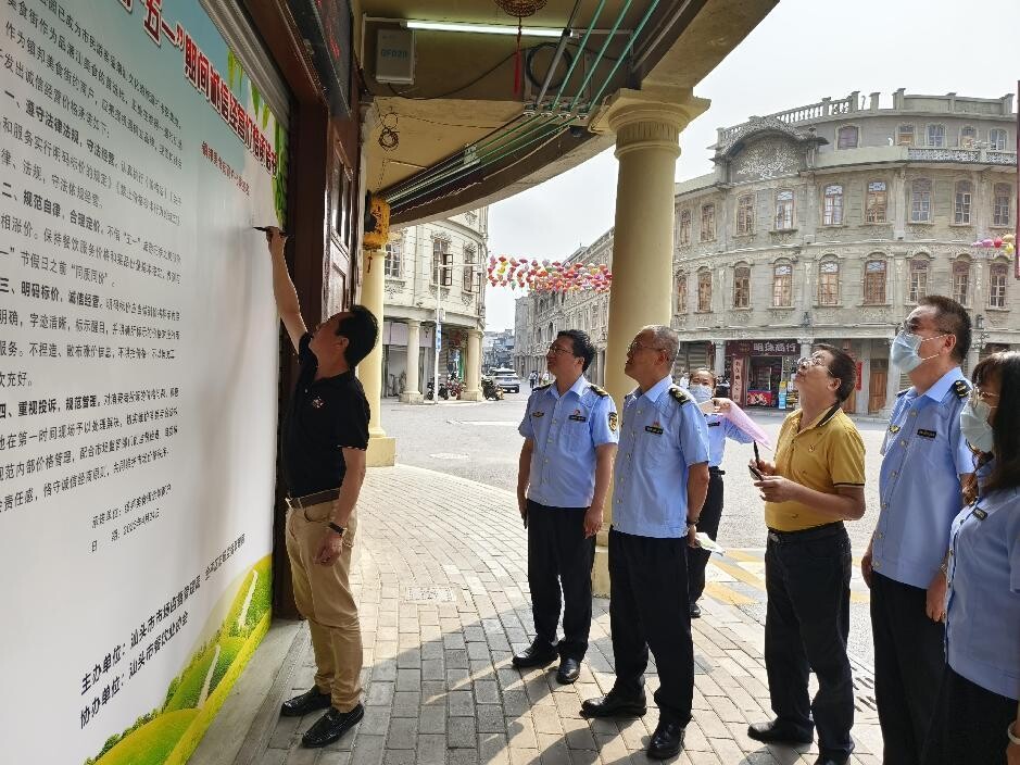 “五一”假期将至,旅游旺季临近,为保持节假日期间餐饮价格稳定,保护消费者合法权益,营造良好的消费环境。2023年4月24日,金平区市场监管局、汕头市场监管局两级联动,在市餐饮业协会协助下,组织了镇邦美食街26家餐饮单位召开“五一”期间诚信经营价格承诺会。