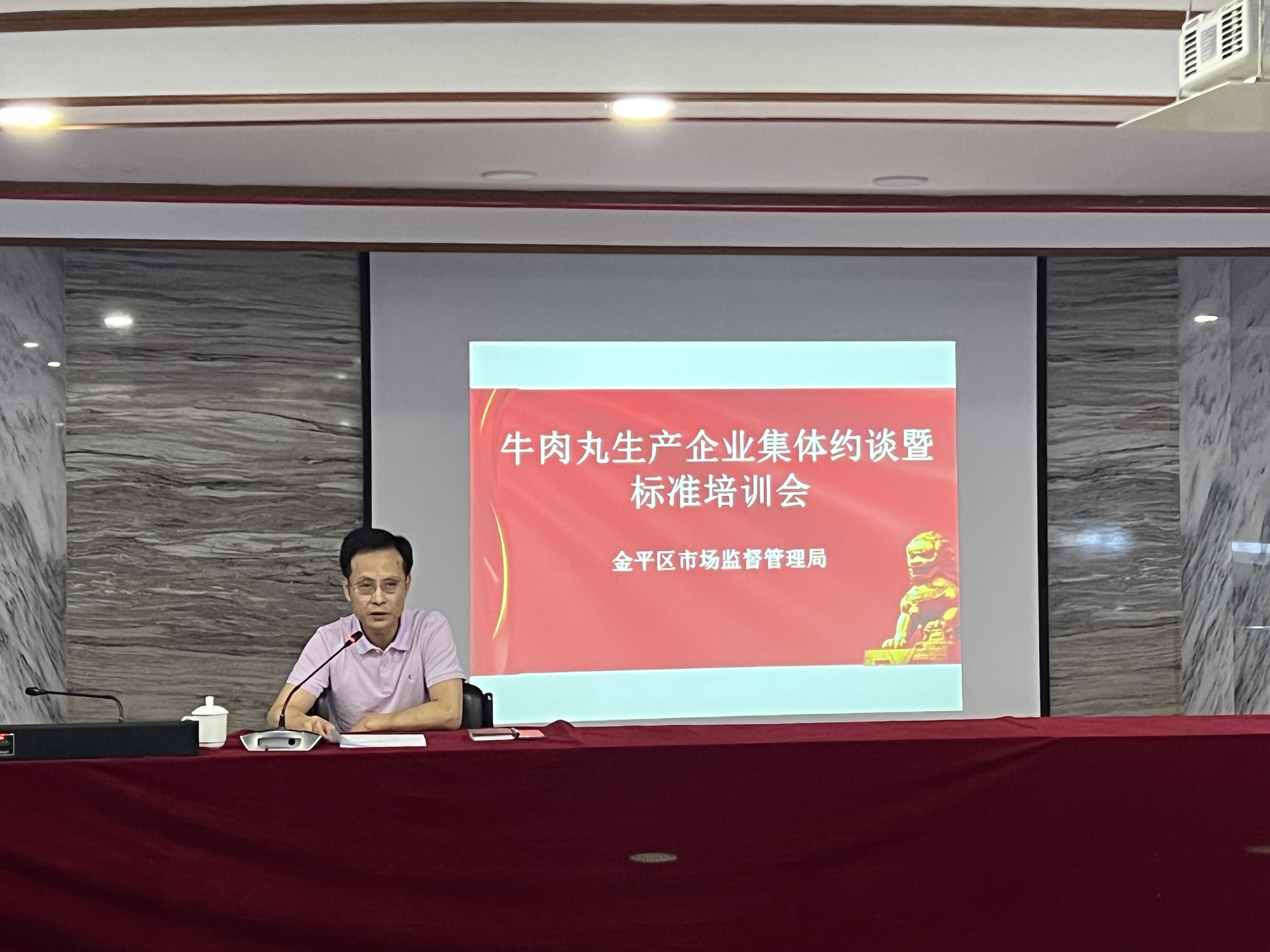 根据《金平区食品安全专项整治工作方案》工作部署,为扎实开展牛肉丸生产领域风险隐患排查整治,保障牛肉丸食品安全,擦亮“汕头牛肉丸”特色食品招牌,促进地方产业高质量发展,金平区市场监督管理局于6月6日召开牛肉丸生产企业约谈暨标准培训会,区局分管领导、各市监所、局执法大队、各业务股室负责人以及全区30多家牛肉丸生产企业法定代表人和质量负责人参加会议。