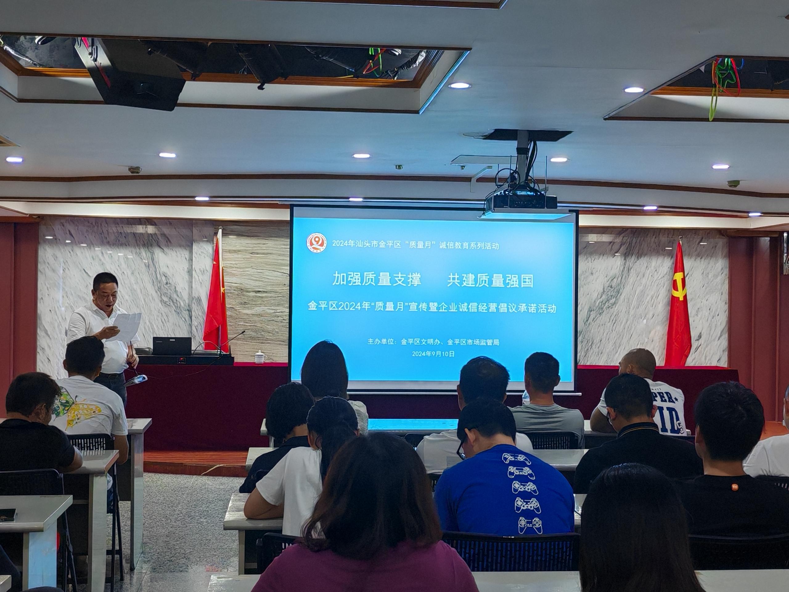 为推进质量强区建设,深入推动全民质量行动,促进高质量发展,9月10日,金平区市场监督管理局开展2024年“质量月”宣传暨企业诚信经营倡议承诺活动。