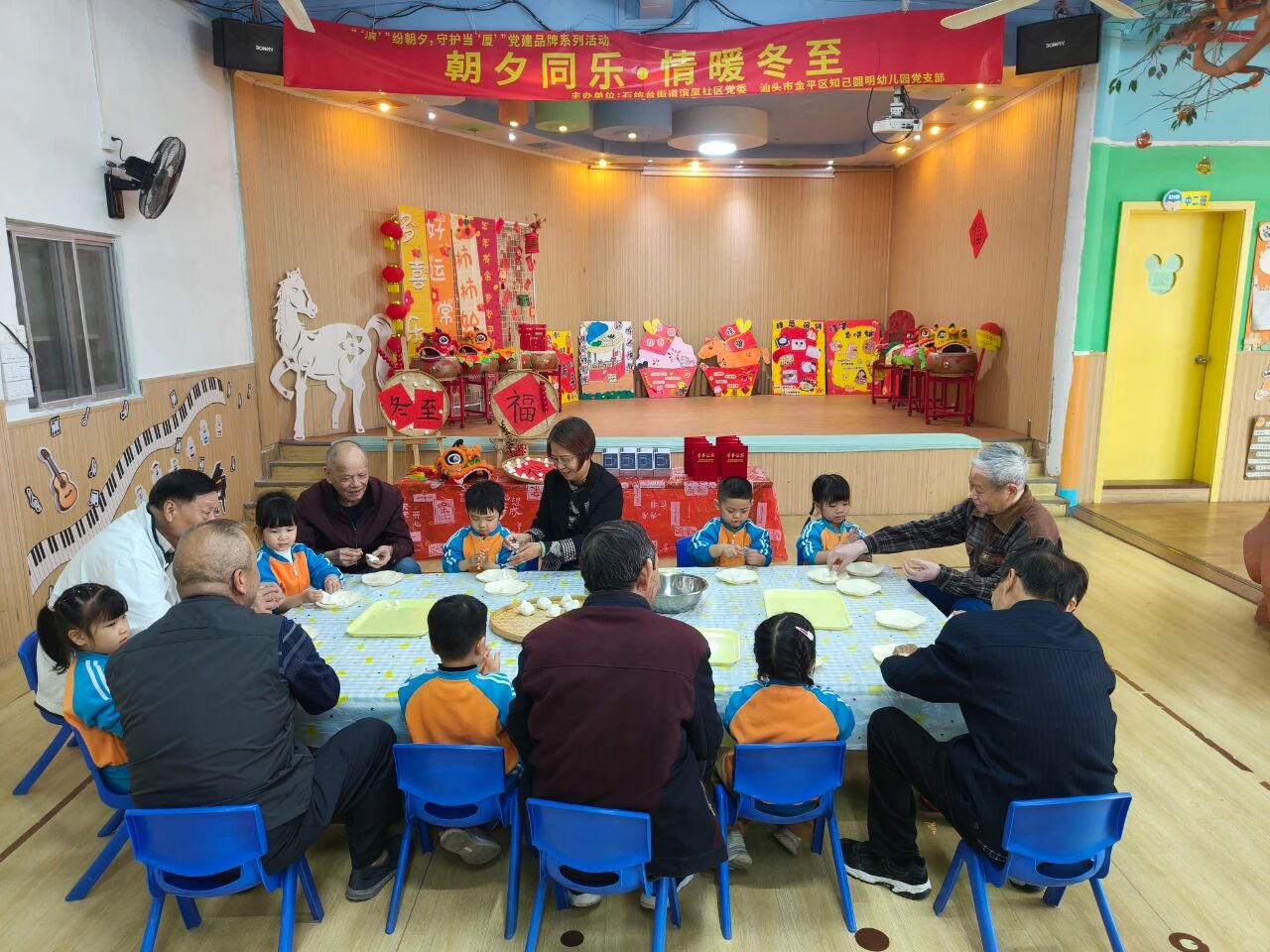 为弘扬中华优秀传统文化,12月19日上午,石炮台街道滨厦社区党委联合汕头市金平区知己圆明幼儿园党支部开展“‘滨’纷‘朝夕’,守护当‘厦’”党建品牌系列活动——“朝夕同乐,情暖冬至”主题活动,社区国企退管老党员和知己圆明幼儿园小朋友共20余人参加,以冬至传统民俗为纽带,推动党组织之间互动融合,搭建老幼共融平台,传递温暖陪伴与代际亲情,在加强退休老党员服务管理的同时,彰显社区对“一老一小”群体的深切关怀。