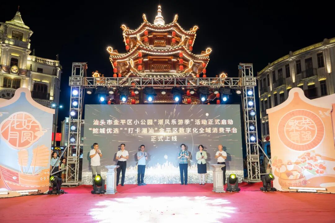 活动中举行了金平区小公园“潮风乐游季”活动启动暨“鮀城优选”“打卡潮汕”金平区数字化全域消费平台上线仪式,今年以来,全市经济社会发展欣欣向荣,文旅行业进入高质量发展通道,金平区委、区政府因势而谋、顺势而为、乘势而上,紧紧围绕党中央决策部署,着力推进区域信息化数字化建设,赋能产业高质量发展,开拓创新搭建数字化全域消费平台和数智文旅消费平台,致力于构建新消费场景,让旅游红利惠及更多群众和商户。小公园开埠区一直稳居景点人气榜前列,聚焦这一文旅主阵地,金平区在中秋国庆假期策划推出“潮风乐游季”活动,开展乐游打卡、非遗展示、美食推介、文艺路演、趣味体育等丰富多彩的文化惠民项目,为海内外游客和市民提供更多优质实体文旅产品,以线下搭台互动+线上消费对接的形式,打造文旅消费新场景,打好服务市民、游客和商户的“组合拳”。
