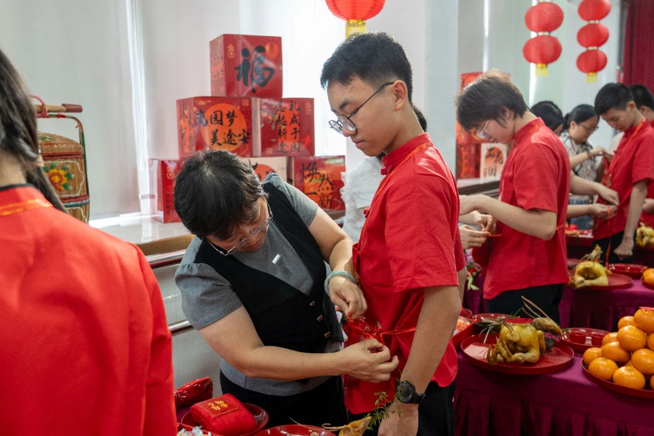 活动现场,十五虚岁的孩子们依次完成了沐浴更衣礼、感恩礼、跳胶掠、咬凤头、步出花园门等仪式。仪式过程庄重又富含着浓浓的爱意,父母们满怀欣慰与期盼为孩子送上祝福,孩子们也在此挥别童稚,正式步入了肩负责任与追求理想的人生新阶段。