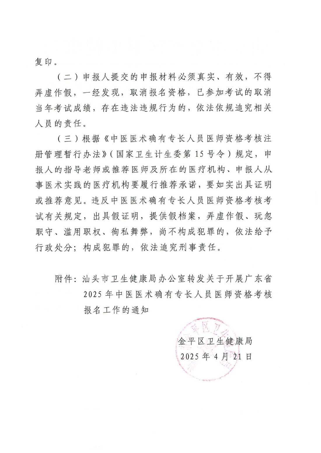 附件:汕头市卫生健康局办公室转发关于开展广东省2025年中医医术确有专长人员医师资格考核报名工作的通知.zip