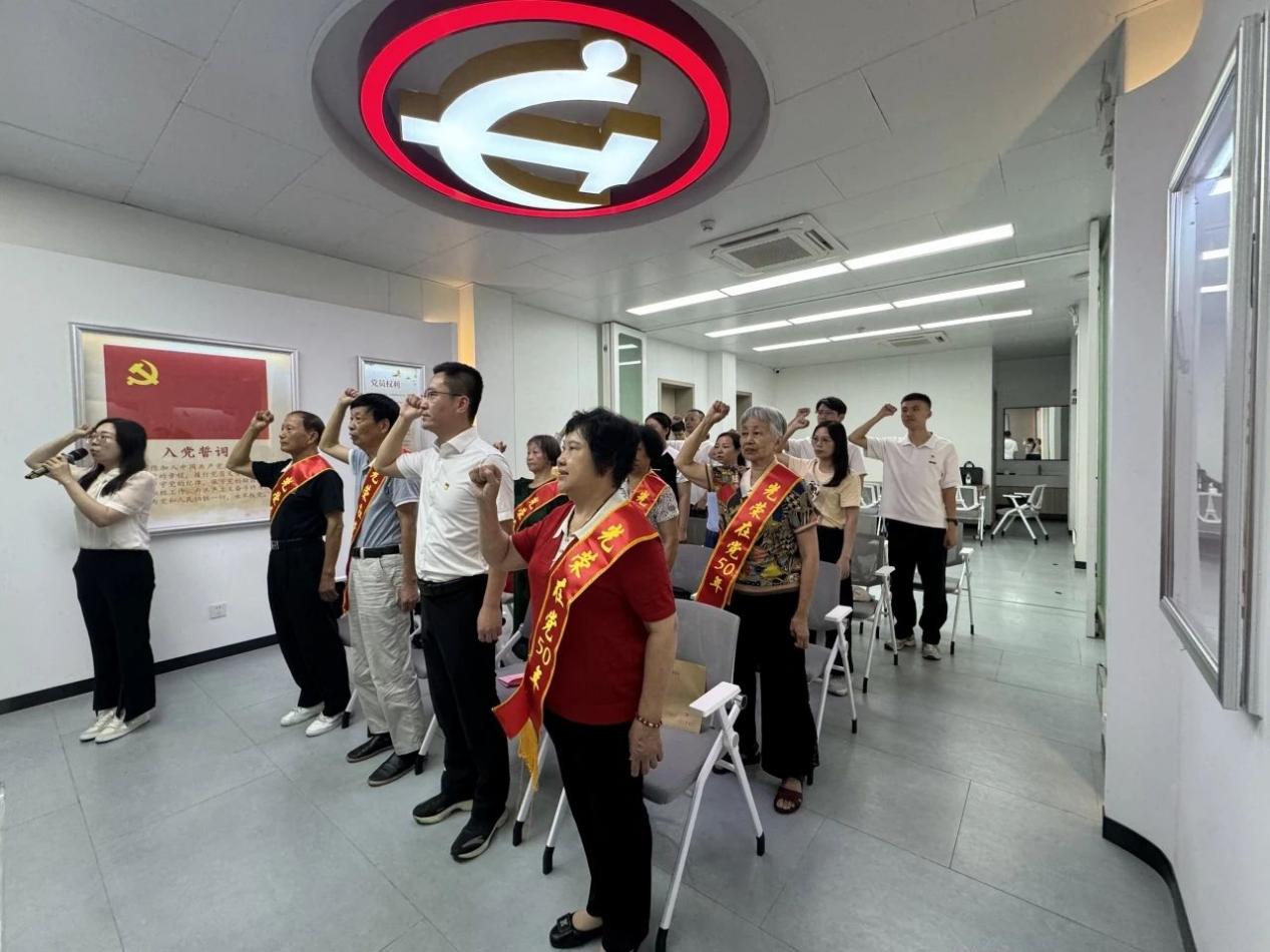 在庄严肃穆的集体宣誓环节,街道组织委员率先举起右拳,带领党员干部们面向鲜艳的党旗。新党员们眼神坚定,首次庄严宣誓;老党员们神情庄重,重温入党誓词。一句句铿锵有力的誓言,回荡在党群服务中心内,不仅是对入党初心的再次确认,更是一次深刻的党性锤炼,让每一名党员都铭记入党时的庄严承诺。