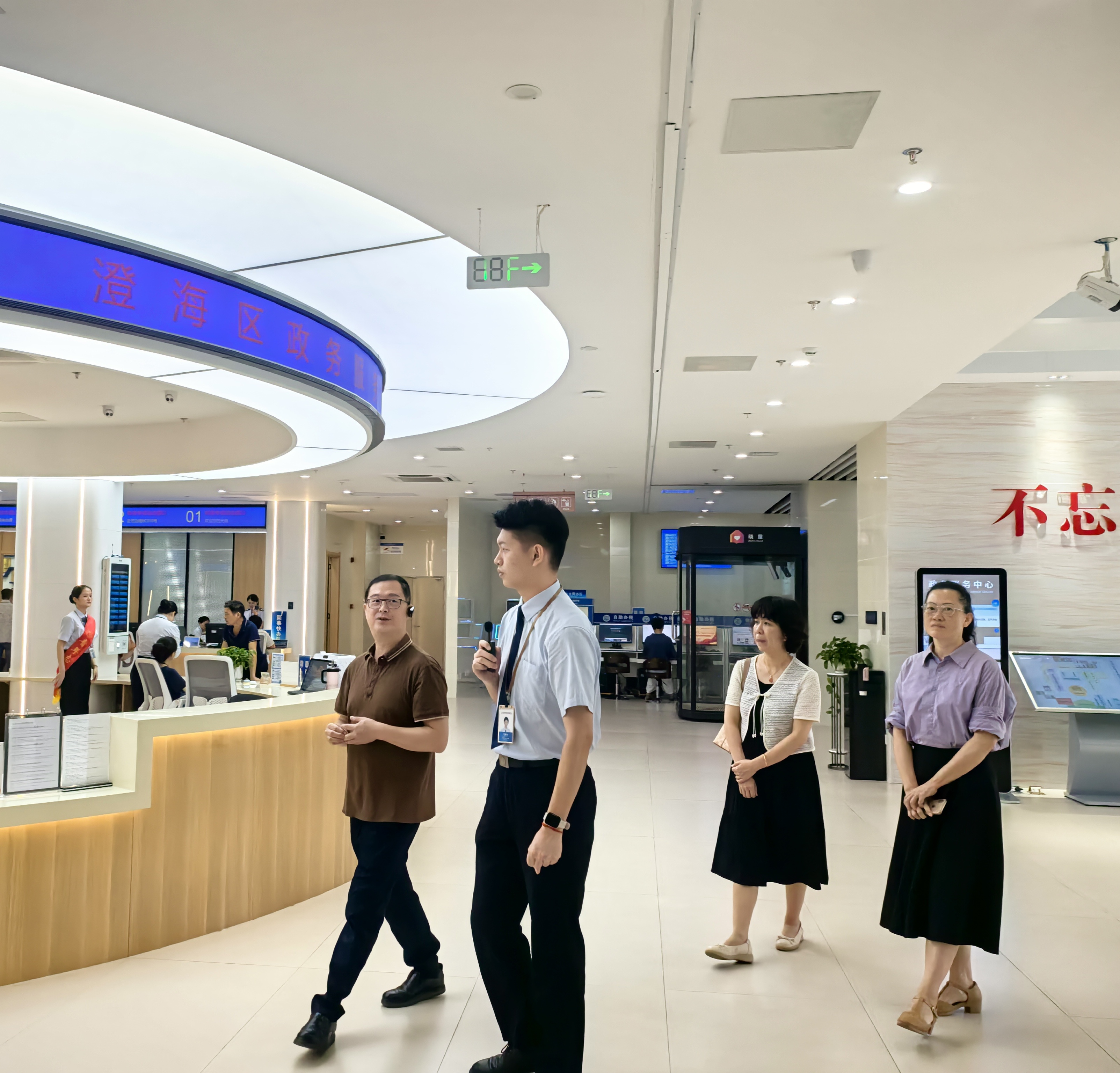 学习组一行参观了龙湖区和澄海区的政务服务中心、龙湖区的公共资源交易中心,重点学习其办事大厅的功能布局、窗口设置、软硬件配套、智能运用、便民设计以及整体环境营造,详细了解了其在推动“应进必进”、优化空间利用、提升群众办事体验方面的“扩容提质”具体举措。