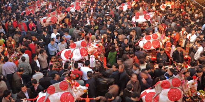 每年农历正月初八为月浦社区赛大猪活动。该活动一般为轮到“做丁头”的家人,从年初三开始亲人与朋友就开始忙碌筹备,各家纷纷挑出最肥壮的大猪宰杀后精心装扮参加比赛。比赛日,父母和已成人的儿子参加赛大猪、贺新年活动,比赛谁家的猪养得肥、扮得美,谁家将大猪搬得快。