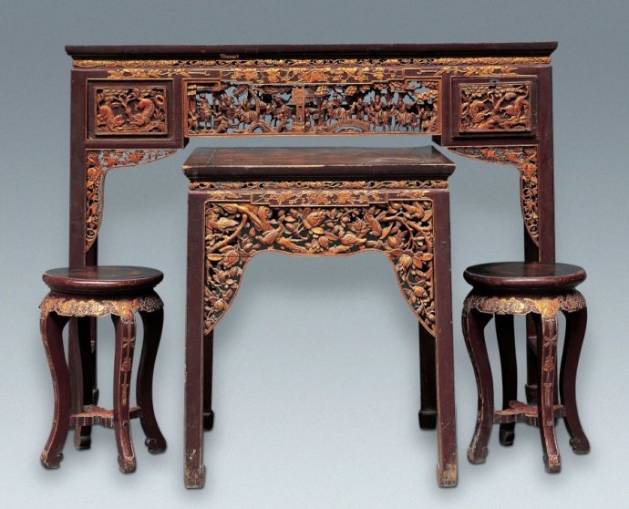 潮汕金漆木雕与浙江东阳木雕为中国两大木雕体系。金漆木雕盛于明清,通常作为建筑物,家具及神器的装饰构件,建筑装饰包括檐角,栓头、横梁、门楣、屏、门等多种。家具装饰大件的有床、几、桌椅、橱、衣柜、梳妆台,小至灯芯筒、纸煤筒等,神器配合民间迎神赛会,有大龛、神轿、宣炉罩等,还有案头摆设的小屏风、圆雕狮子、龙凤和虾、蟹篓等,器件雕成后,外表涂漆或刷上金粉、或贴金薄。金漆木雕以前多用防蛀耐朽的樟木为料,能多层镂空。其形式大体分为浮雕,通雕、圆雕等三种。题材大都来自民间神话,传说、戏剧和历史故事,还有各种珍禽瑞兽,花果虫鱼。1982年,金平域内的汕头市木雕厂为广州东方宾馆制作的总面积54平方米的巨型挂屏《大观园庆元宵》,场面气势宏伟磅礴,构思新颖,布局合理,路径曲折分明,层次重叠剔透,是世界上最大型的金漆木雕屏,并获当年国家轻工部优秀设计一等奖和中国工艺美术品百花奖希望奖杯。此外,域内还有一批老艺人创作的作品如《蟹篓》等在20世纪六七十年代分获国家级奖励。