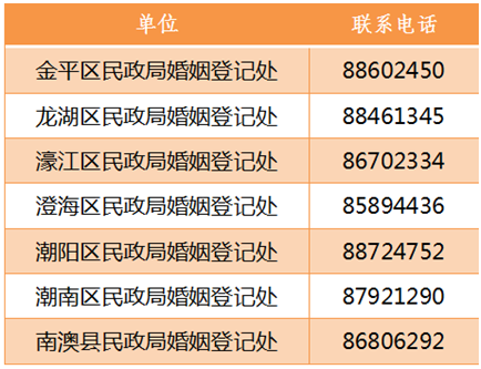 3.全市各婚姻登记机关已于2021年5月20日起实行婚姻登记“全城通办”服务。根据《汕头市民政局关于印发<汕头市婚姻登记“全城通办”工作方案>的通知》的文件精神,婚姻当事人有一方为汕头户籍,全市“六区一县”均可预约申请办理结婚登记和离婚登记(包括国内居民、涉外、涉港澳台和华侨婚姻登记)。