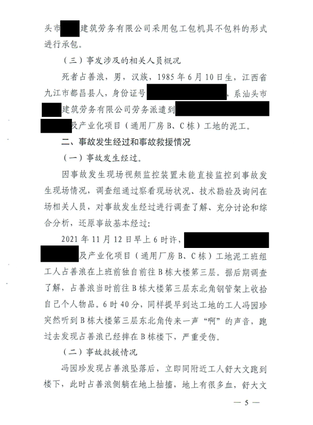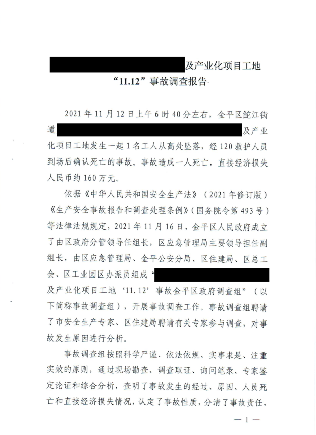 关于******及产业化项目工地“11.12”事故调查报告