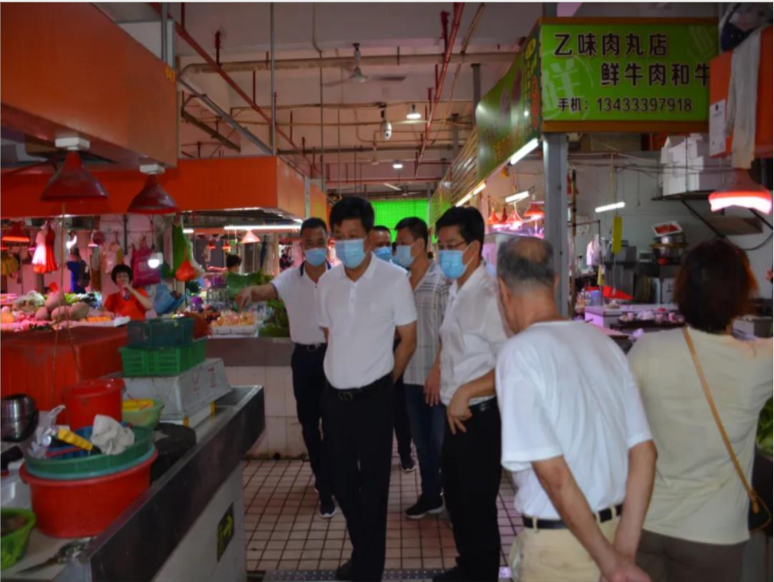 在农贸市场的检查中,调研组对辖区内农贸市场的农残快检、卫生清洁、划行规市,特别是市场内销售进口冷冻食品的疫情防控工作等情况进行了严格检查。并强调,农贸市场的食品安全牵涉千家万户,食品安全工作不容丝毫马虎,特别是在疫情防控的重要关口,要继续落实落细农贸市场各项防疫措施,进一步加强食品检测监管,尤其要规范冷冻食品市场秩序,切实保障人民群众身体健康和“菜篮子”安全。