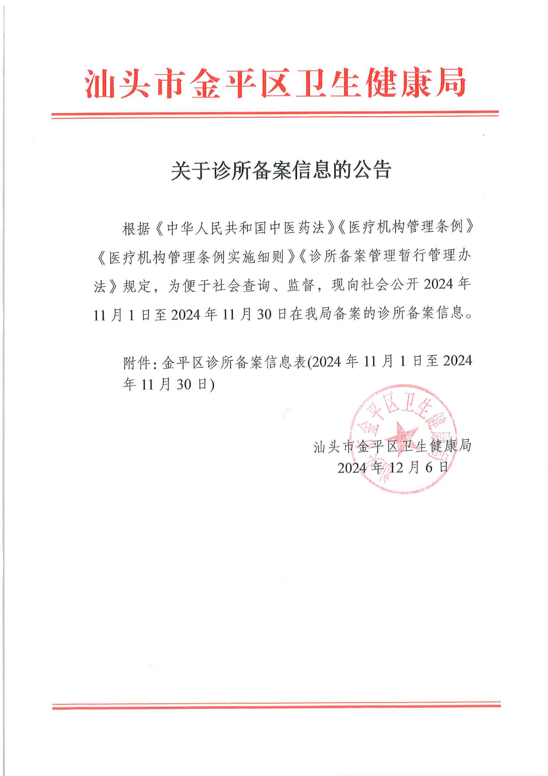 汕头市金平区卫生健康局 2024年12月6日