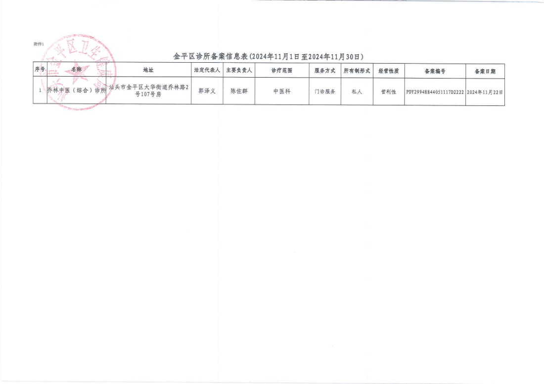 附件:金平区诊所备案信息表(2024年11月1日至2024年11月30日).xlsx