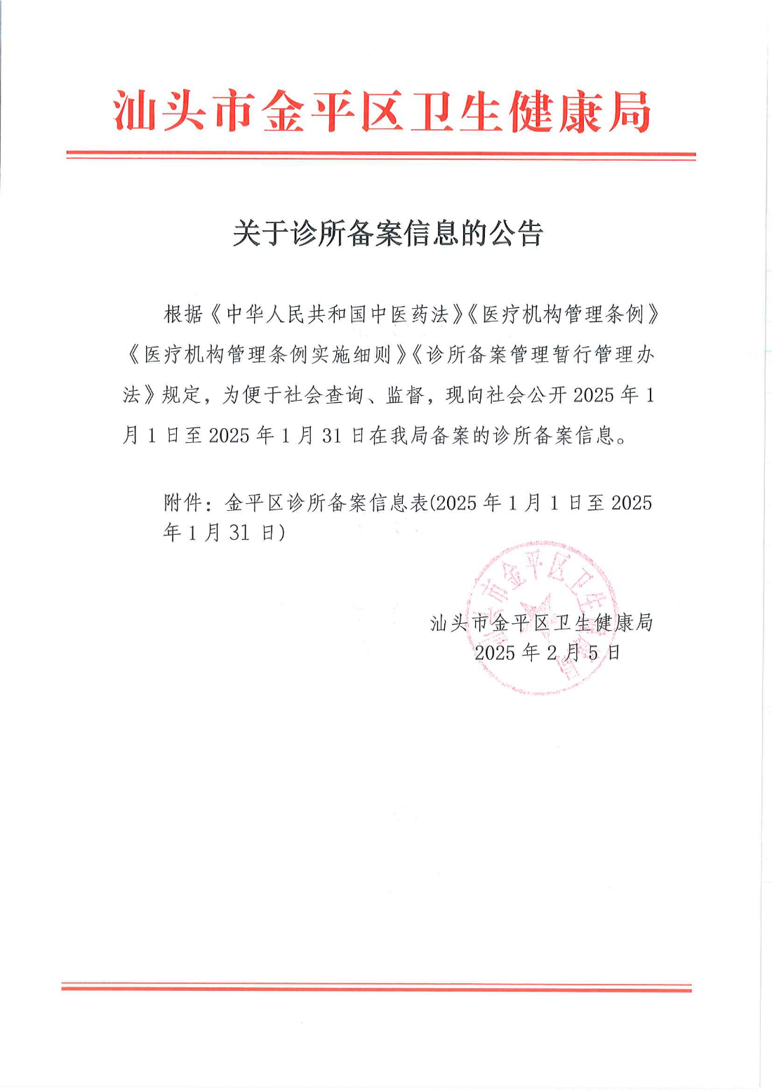 汕头市金平区卫生健康局 2025年2月5日