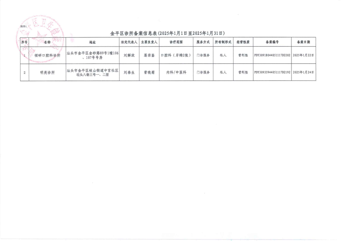 附件:金平区诊所备案信息表(2025年1月1日至2025年1月31日).xlsx
