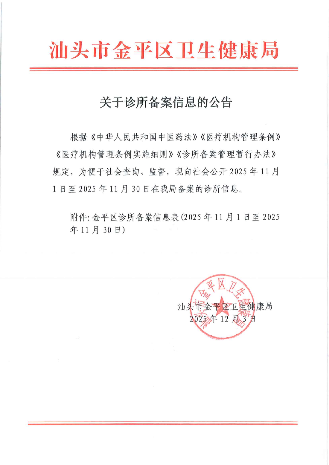 汕头市金平区卫生健康局 2025年12月3日