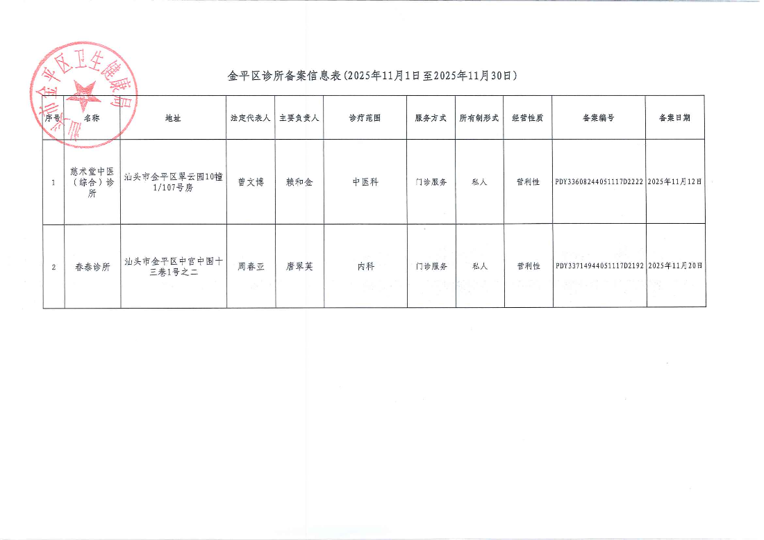 附件:金平区诊所备案信息表(2025年11月1日至2025年11月30日).xlsx